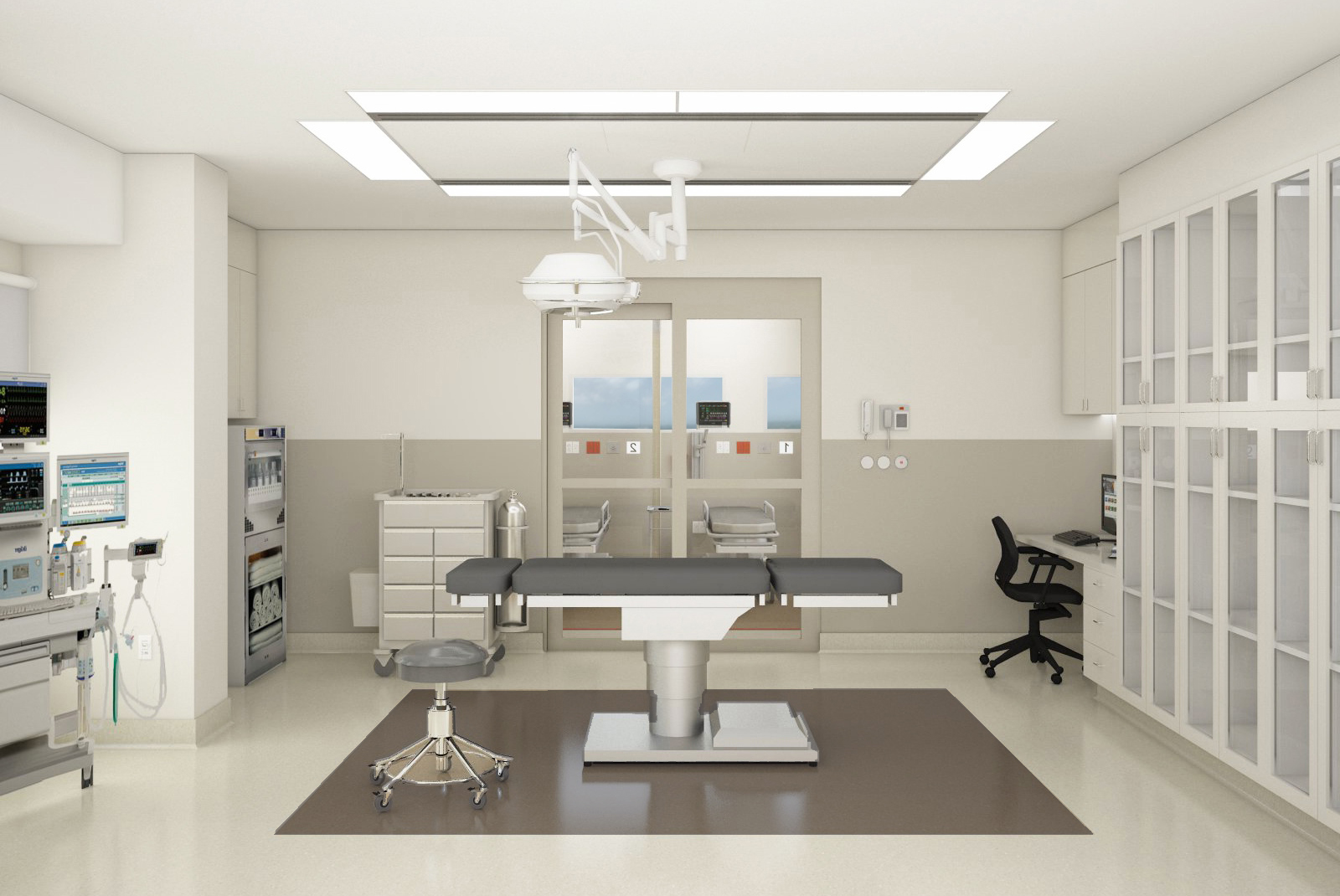 Diseño salas de cirugías, áreas de soporte, consultas, áreas de personal, y recepción con sala de espera.