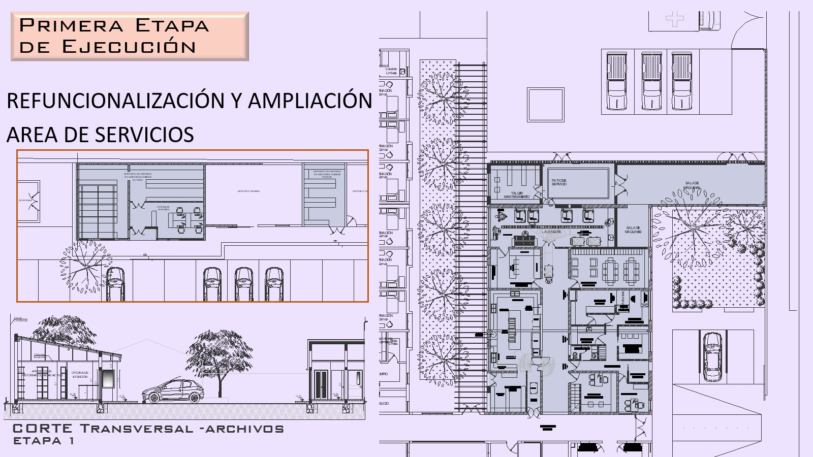 Refuncionalización y ampliación del Área de Servicios Generales: esterilización, áreas de archivos, lavadero, cocina, comedor para el personal y nuevas salas de máquinas.